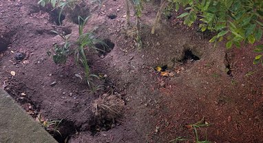 If you see holes burrowed into your yard dirt, they could mean a sign of a mice and/or rat nest on your property. In this picture, it's a massive rat…